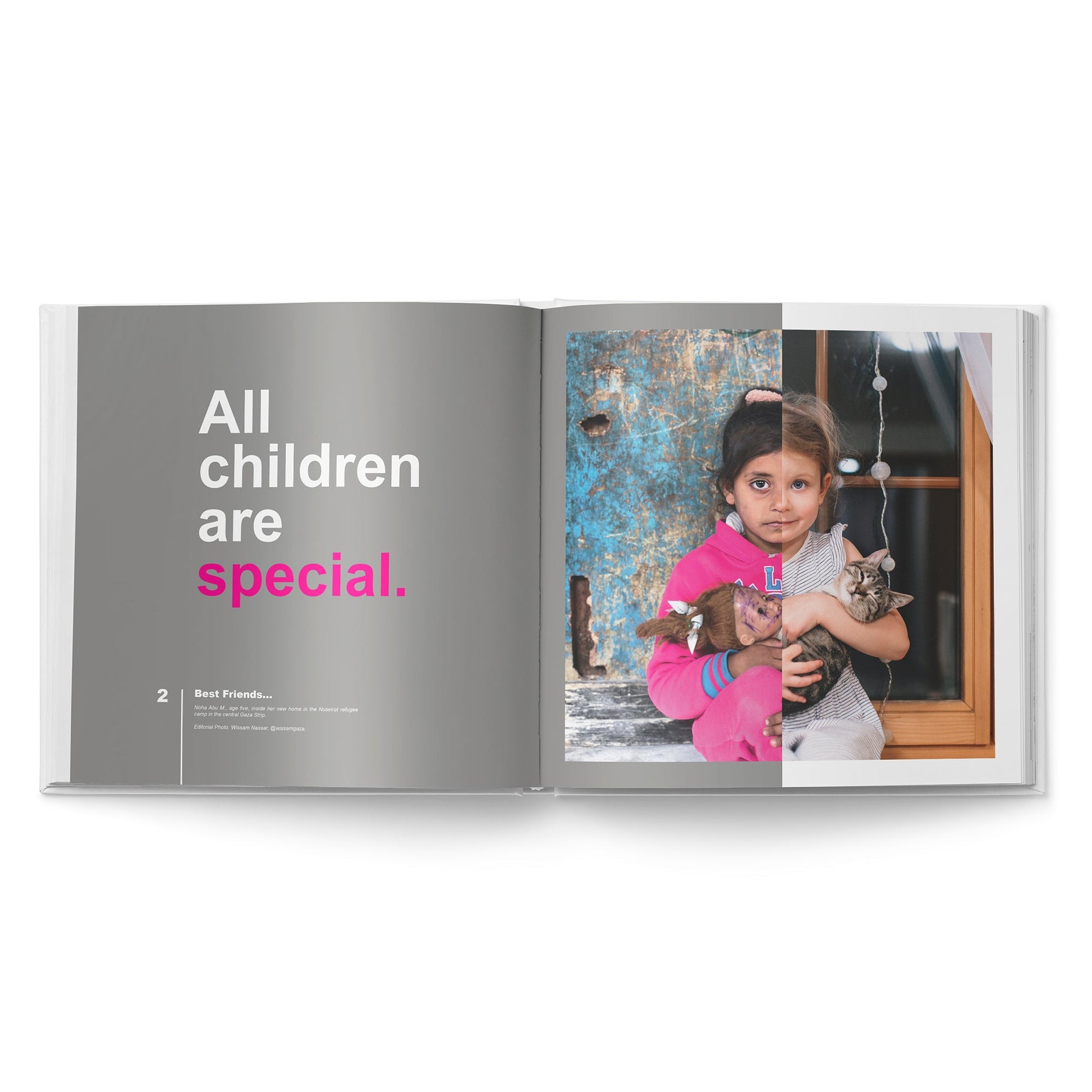 Parallel Universes of Children, an 11x11-inch, 108-page hardcover volume, contains 50 collages representing children's rights and pairs each artwork with quotes and facts about children’s lived realities.